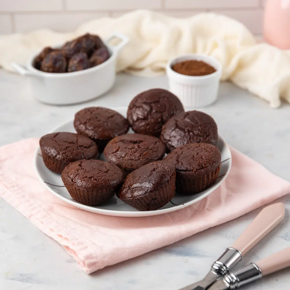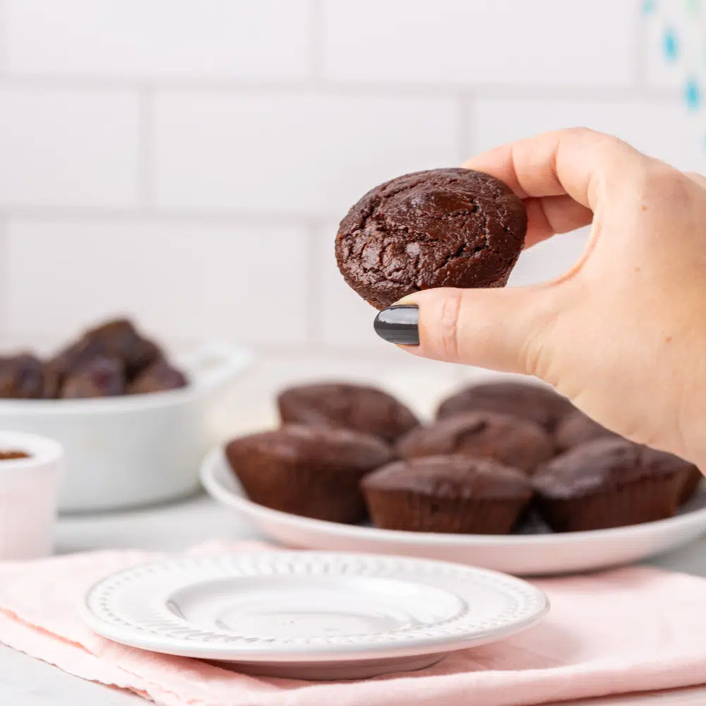 Ingredientes: Água, tâmara MedJoul, farinha de arroz branco, farinha de aveia, uva passa preta, óleo de coco, cacau em pó 100%, fermento químico orgânico, vinagre de maçã orgânico e sal. EMBALAGEM COM 4un CONGELADOS SEM AÇÚCAR E SEM ADOÇABNTE | SEM LEITE E SEM DERIVADOS | SEM OVOS | SEM TRIGO