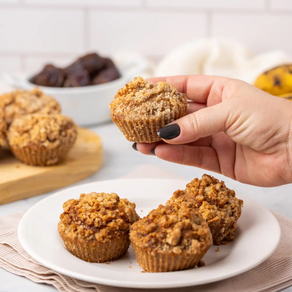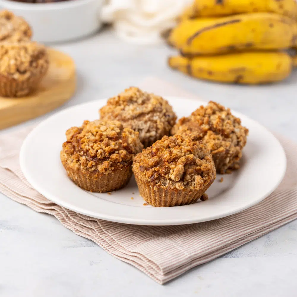 Ingredientes: Água, banana, mix de farinhas sem glúten (farinha de arroz integral, fécula de batata e goma xantana), farinha de aveia, tâmara, óleo de coco, fermento químico, maçã em pó e canela em pó.